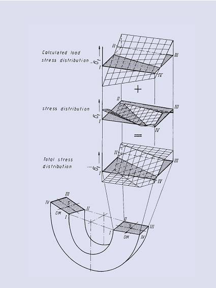 實(shí)際上,碟型彈簧的計(jì)算應(yīng)力與實(shí)際應(yīng)力并不一致,這是由于噴丸處理和強(qiáng)壓處理過程中產(chǎn)生的殘余應(yīng)力所致,實(shí)際應(yīng)力由殘余應(yīng)力和加載應(yīng)力所組成。彈簧的動(dòng)態(tài)強(qiáng)度主要受碟片下表面的拉應(yīng)力影響,由于生產(chǎn)過程中產(chǎn)生的殘余應(yīng)力,碟型彈簧的計(jì)算應(yīng)力高于實(shí)際應(yīng)力?;诓煌?/span>ho/t值,碟形彈簧橫截面II點(diǎn)(下表面內(nèi)邊緣)或III(下表面外邊緣)為最大拉應(yīng)力點(diǎn)。