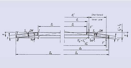 DIN2093標(biāo)準(zhǔn)詳細(xì)規(guī)定了盤片厚度由t減到t’的情況。A、B系列彈簧t’與t之間的平均厚度減薄比為0.938,C系列彈簧t’與t之間的平均厚度比為0.995。由于支撐面的存在,已不必對(duì)橫截面邊緣I…IV角點(diǎn)的載荷應(yīng)力進(jìn)行計(jì)算。因此計(jì)算應(yīng)力或多或少高于用更為精確的方法計(jì)算的角部實(shí)際應(yīng)力。由于這些數(shù)值只是一些名義值,因此偏差并不重要。