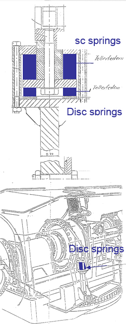 在汽輪機中,發(fā)電機組由兩組蝶形彈簧驅(qū)動。蝶形彈簧主要用來補充由于載荷輸入不均衡而導致的扭矩偏差。